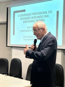 Um dos palestrantes convidados, Robert Evan Verhine, professor da UFBA e ex-coordenador de área de educação na CAPES, contextualizou o debate lembrando que, no início, havia uma resistência enorme contra os mestrados profissionais, citando que até a ANPEd tinha um documento contra. Verhine defendeu que a identidade própria do DPE é essencial, distinta do modelo acadêmico, para que não seja percebido como um doutorado de segunda categoria, mas sim como um programa prestigiado por seus méritos únicos. Segundo ele, o foco do acadêmico é a formação de pesquisadores, enquanto o profissional visa a formação de lideranças que sabem resolver problemas usando a profissão como laboratório para a resolução de problemas práticos no contexto profissional.